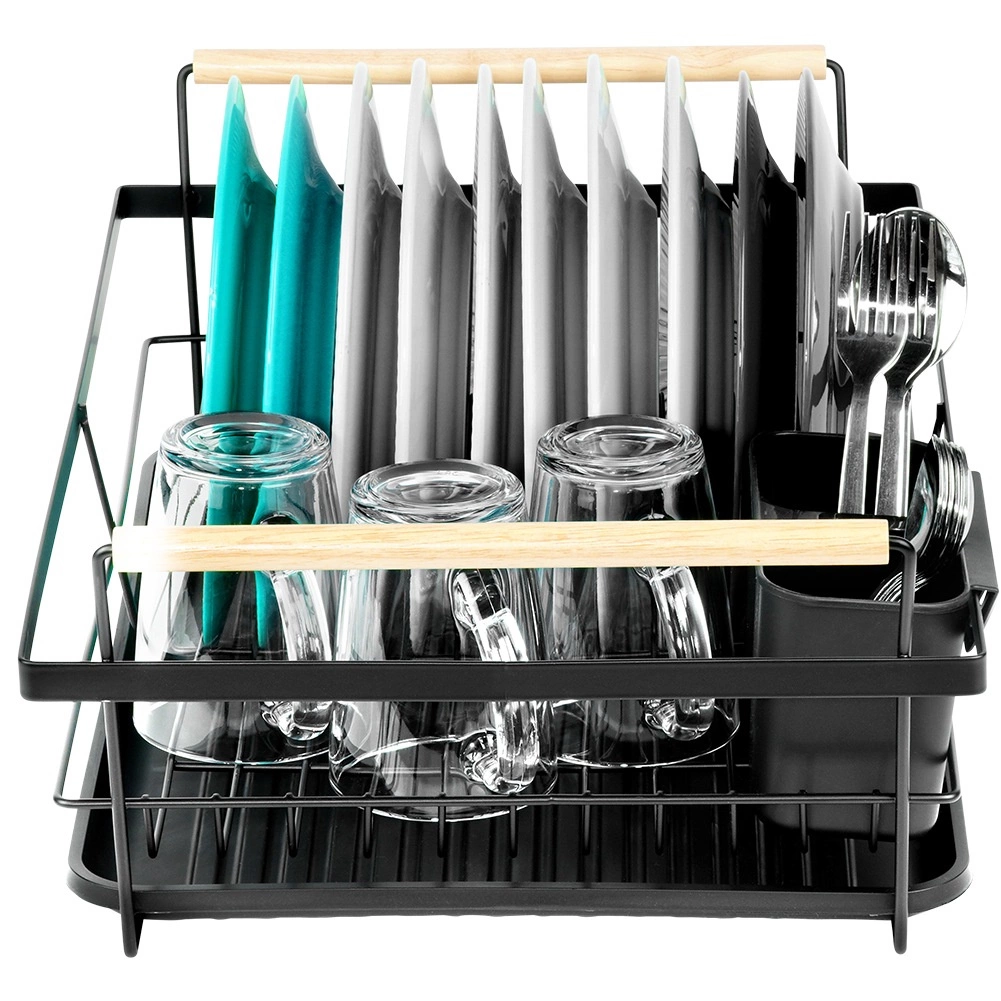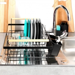 Twee houten handgrepen maken verplaatsen gemakkelijk en geven het afdruiprek een modern, natuurlijk accent voor elke keuken.