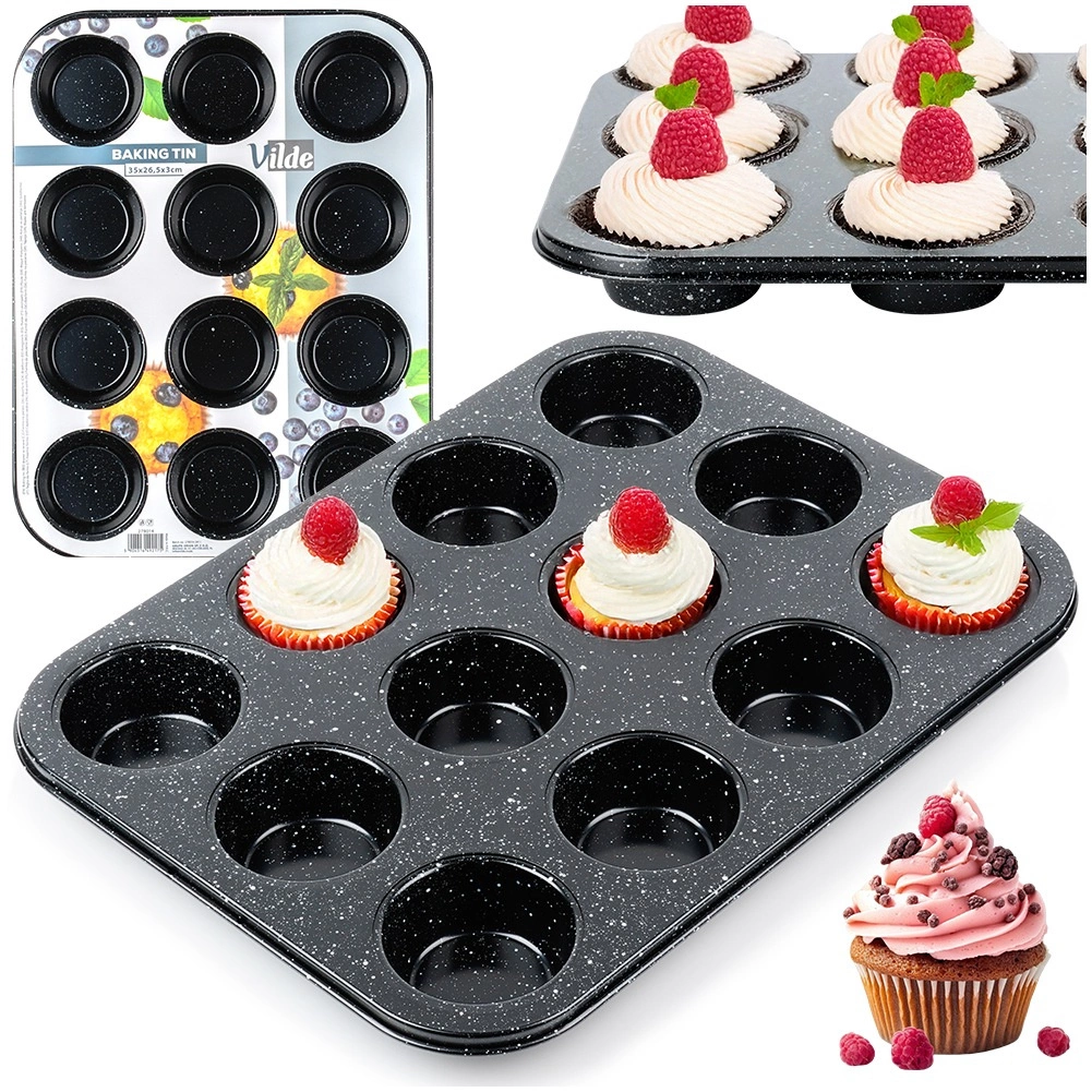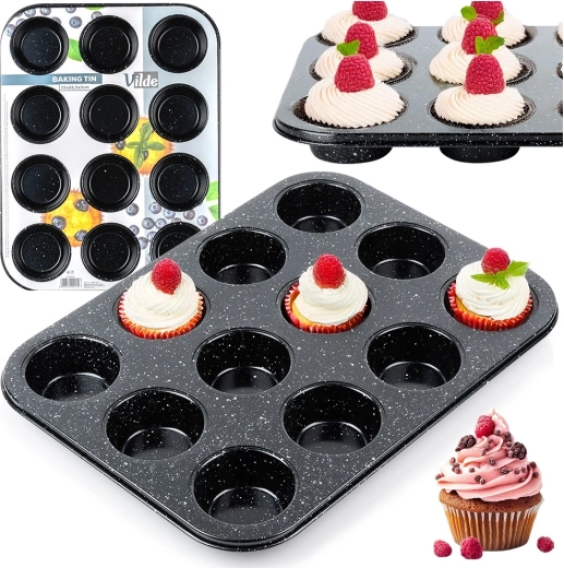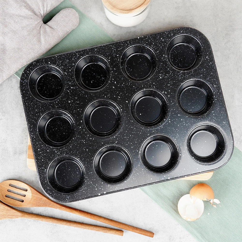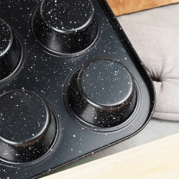 Deze hoogwaardige muffinbakvorm van duurzaam koolstofstaal met granieten anti-aanbaklaag is ideaal voor zowel zoete als hartige lekkernijen. Bakt tot 12 perfecte porties tegelijk, geleidt warmte uitstekend en helpt een gelijkmatig gegaarde kern en een knapperige rand te bereiken.