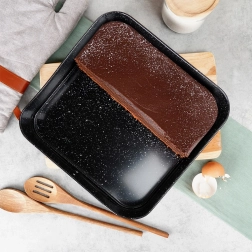 De gespikkelde granietcoating voorkomt aanbranden en maakt schoonmaken eenvoudiger. Bak met minder vet en krijg strakke randen.