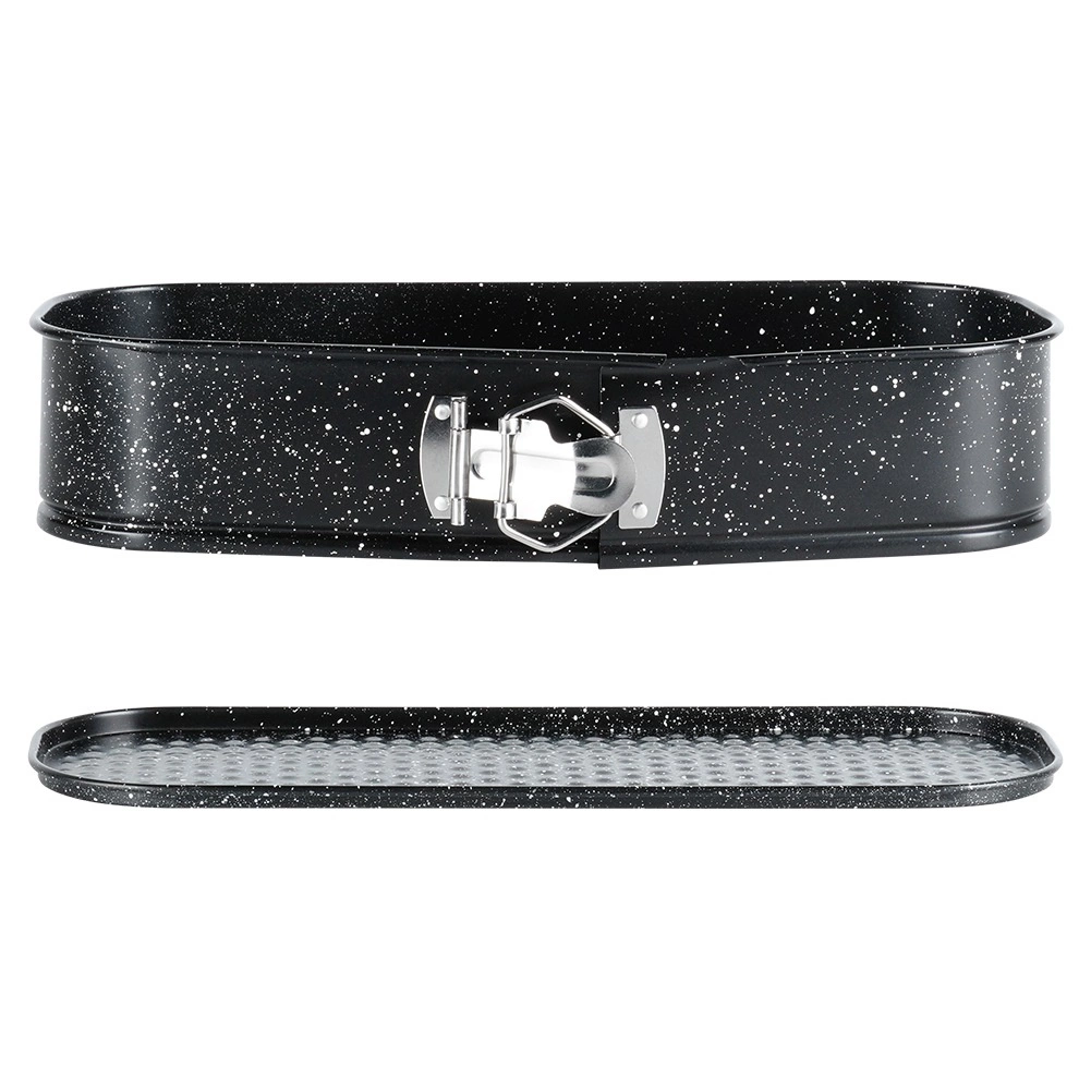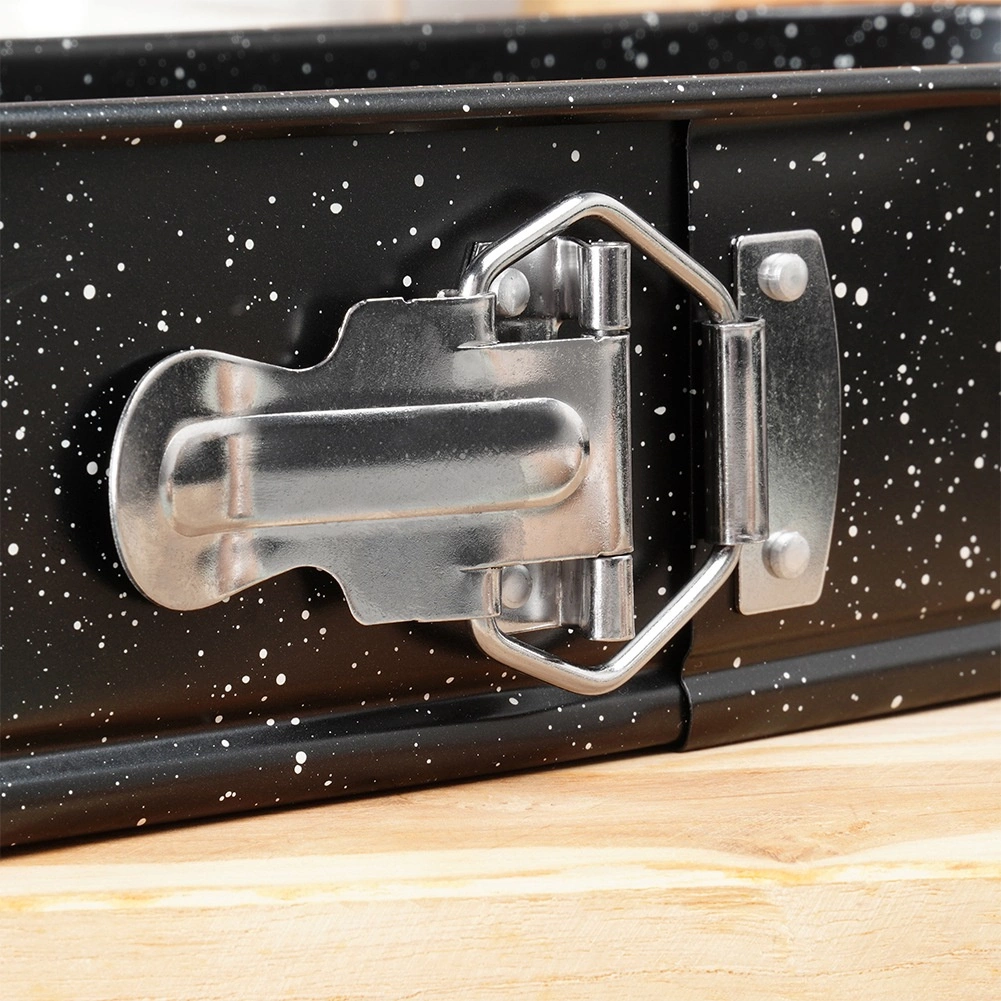 De praktische sluiting aan de zijkant opent de ring in een seconde – je haalt het gebakken brood of cake eruit zonder de vorm te beschadigen.