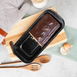 De rechthoekige vorm met afgeronde hoeken houdt het deeg bij elkaar en maakt het uitnemen van het brood, de cake of paté eenvoudig zonder beschadiging.