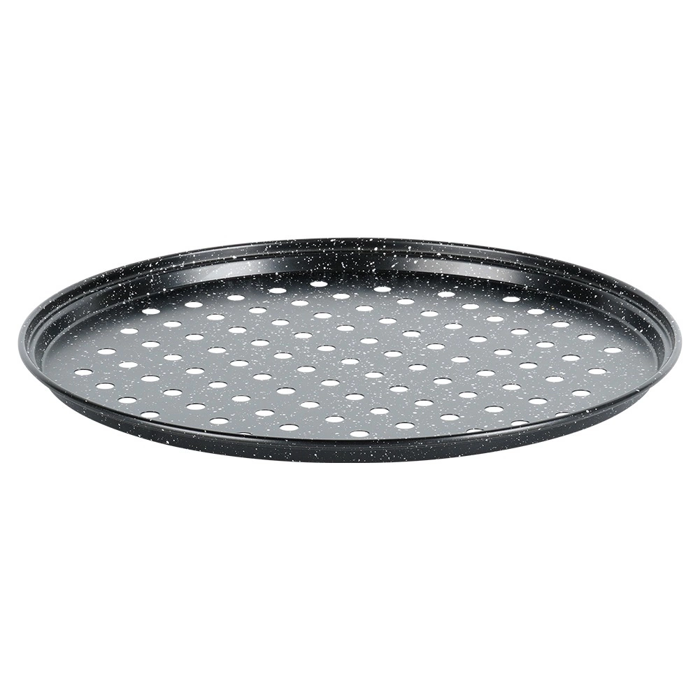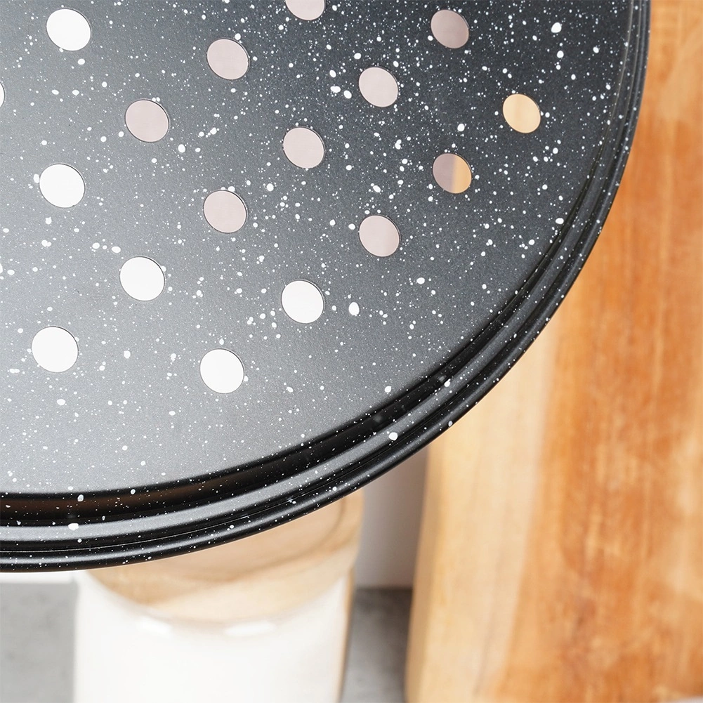 Bak huisgemaakte pizza met een perfect knapperige bodem. De geperforeerde bodem zorgt voor betere luchtcirculatie en snellere afvoer van stoom, zodat het deeg gelijkmatig gaart en heerlijk krokant blijft. De granieten antiaanbaklaag minimaliseert aanbranden zelfs bij weinig vet en vergemakkelijkt het reinigen.