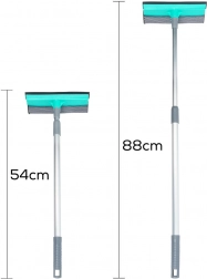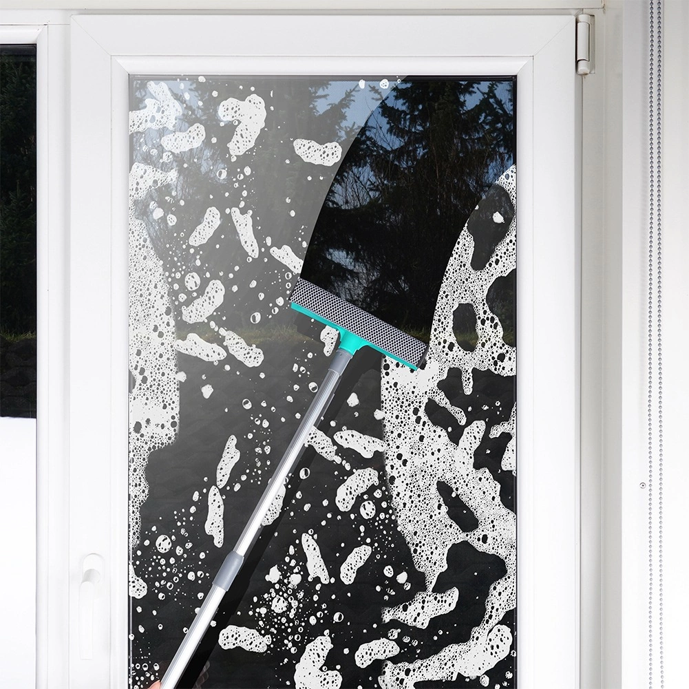 De verstelbare lengte maakt het eenvoudig hoge ramen en lastig bereikbare plekken te reinigen en bespaart tegelijk ruimte bij het opbergen.