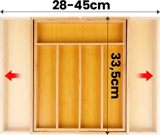 De uitschuifbare constructie van 28 tot 45 cm zorgt ervoor dat de organizer precies in je lade past en de beschikbare ruimte maximaal benut.
