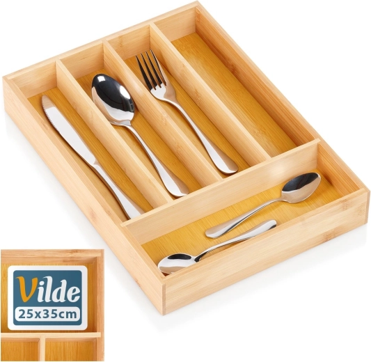 Deze praktische organizer van hoogwaardig bamboehout houdt je bestek, messen en klein keukengerei altijd op hun plek. 5 doordacht ingedeelde secties maken het dagelijks koken makkelijker en zorgen voor snelle toegang tot vaak gebruikte items.