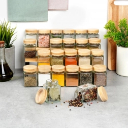 Deze set glazen kruidenpotjes is ideaal voor dagelijks koken en stijlvolle organisatie. Elk potje heeft een inhoud van 100 ml, een transparante body voor eenvoudige inhoudscontrole en een deksel van bamboehout dat een natuurlijke uitstraling geeft en voor een praktische afsluiting zorgt. Dankzij de bijgevoegde stickers met namen van de meest voorkomende kruiden en specerijen vind je snel het juiste ingrediënt.