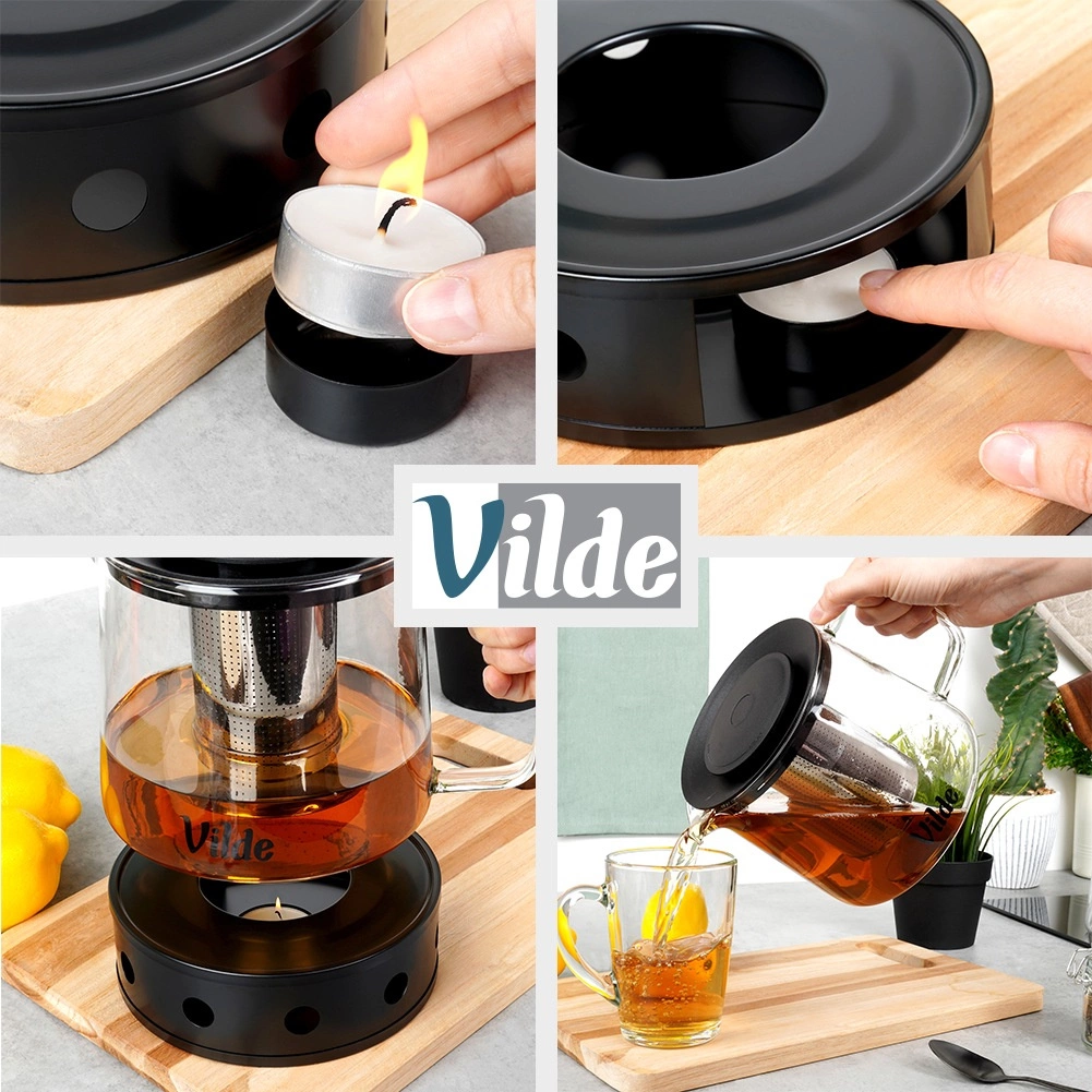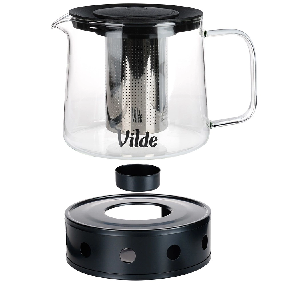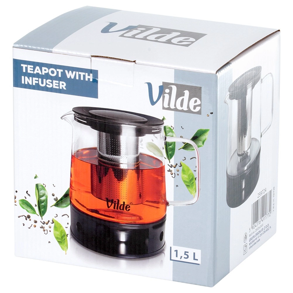 Elegante glazen theepot met een inhoud van 1,5 l en een geïntegreerde roestvrijstalen zeef voor een heldere infusie zonder blaadjes. Dankzij de meegeleverde warmhouder voor een waxinelichtje blijft de drank langer warm. Hittebestendig borosilicaatglas, een praktische afneembare deksel en druppelvrij schenken maken deze theepot tot een uitstekende keuze voor thee, kruideninfusies en koele limonades. Origineel VILDE-product.