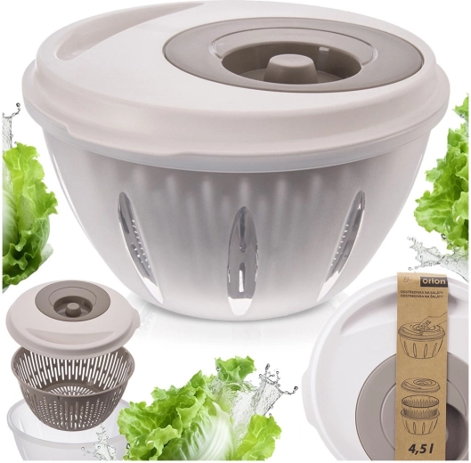 De ELA-slacentrifuge is een onmisbare hulp voor het snel bereiden van gezonde salades. Hij combineert een ruime, transparante kom, een uitneembare mand/vergiet en een deksel met een centrale bedieningsknop/slinger, waarmee je de mand eenvoudig laat draaien en in een oogwenk water verwijdert.