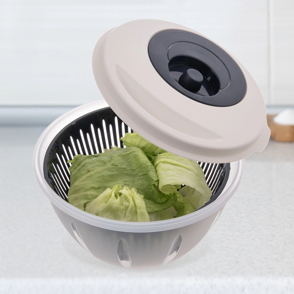 De veelzijdigheid is ook buiten salade om handig – de uitneembare mand werkt als vergiet, de kom als serveerschaal. Alle onderdelen zijn eenvoudig te demonteren en te reinigen; de kom is geschikt voor de vaatwasser en magnetron en hittebestendig tot +95 °C. De hoogwaardige uitvoering met transparante kom, grijze mand en wit deksel past perfect in elke keuken.