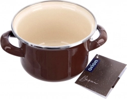 De praktische pan uit de Brown-serie combineert een klassieke look met betrouwbare prestaties. De geëmailleerde afwerking is hygiënisch, bestand tegen vlekken en geuren en vriendelijk voor allergieën. De beige binnenlaag biedt goed zicht op het kookproces; de roestvrijstalen rand verhoogt de duurzaamheid en levensduur.