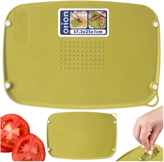Praktische en hygiënische snijplank voor dagelijks gebruik. Biedt een dubbelzijdige uitvoering, antislipnopjes, centrale pinnetjes voor het fixeren van voedsel en gemakkelijke afvoer van sappen in één richting. Vaatwasmachinebestendig, hittebestendig tot +95 °C en voorzien van een opening om op te hangen. Bewezen kwaliteit van het merk ORION.