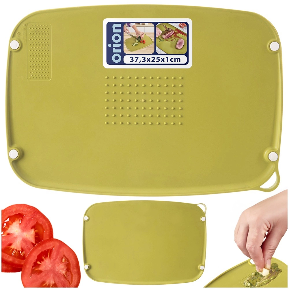 De plank is gemaakt van hoogwaardige, voedselveilige kunststof in het groen, is duurzaam en licht, geschikt voor dagelijks gebruik en gemakkelijk te reinigen in de vaatwasser. Dankzij de ophangopening berg je haar ruimtebesparend op en heb je haar altijd bij de hand.