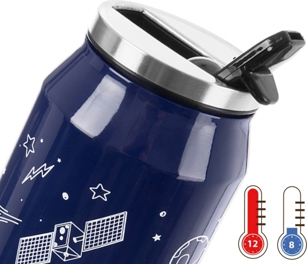 De thermobeker in blikvorm combineert praktische vacuümisolatie en duurzaam roestvrij staal met een origineel ruimtethema. Ideaal voor koffie, thee en koude limonades – verfrissend in de zomer, verwarmend in de winter. Dankzij de slanke vorm past hij goed in de meeste bekerhouders in de auto.