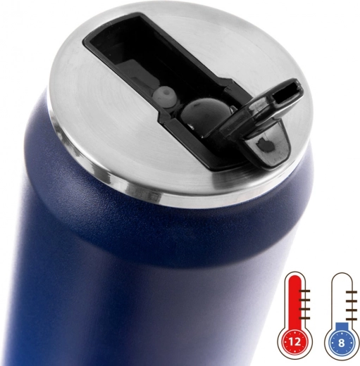 De dubbelwandige roestvrijstalen constructie houdt dranken tot 12 uur warm en tot 8 uur koud – ideaal voor de hele dag.