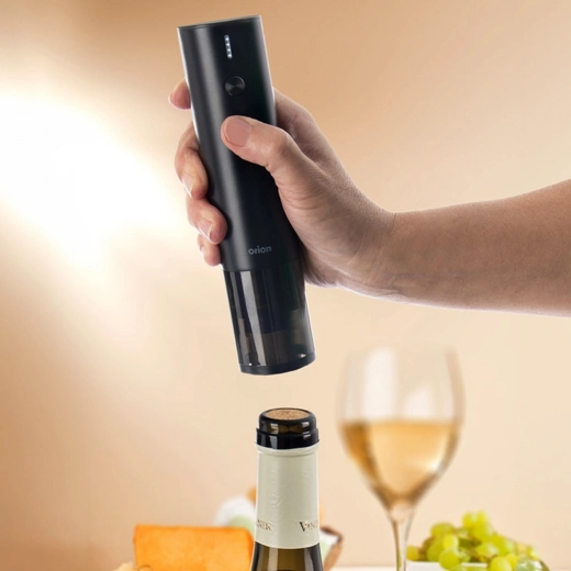 Geniet van wijn zonder moeite – deze elektrische ORION‑opener opent de fles met een druk op de knop en verwijdert de kurk voorzichtig zonder deze te beschadigen. De transparante onderste kamer geeft controle over het uittrekken van de kurk en het elegante zwarte design past in elk huishouden.