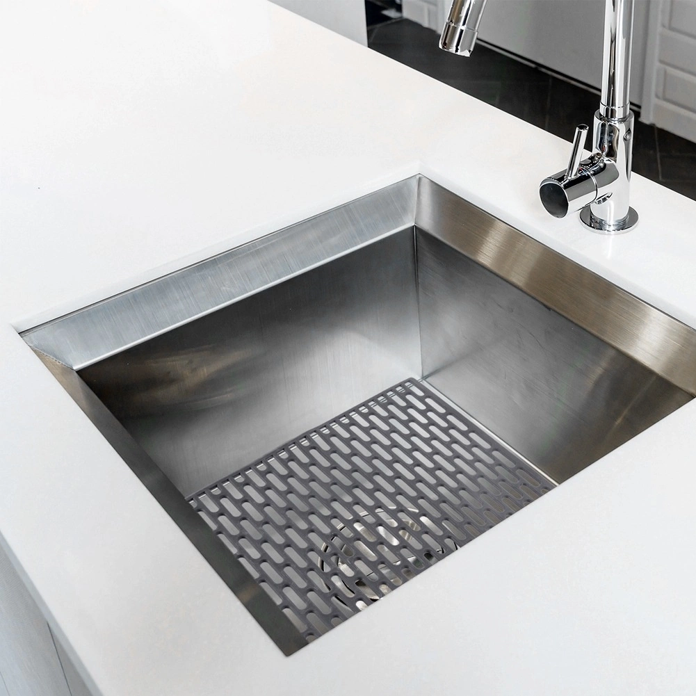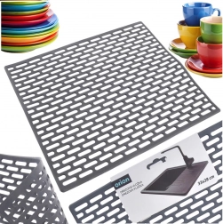 De doordachte geperforeerde structuur maakt een vrije doorstroming van water mogelijk en voorkomt ophoping. De mat is gemakkelijk af te wassen, flexibel en hecht uitstekend aan het oppervlak. Dankzij het compacte formaat van 33 × 28 cm en de neutrale look past ze in zowel moderne als klassieke keukens.