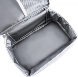 Het praktische handvat maakt dragen eenvoudig, terwijl het gaasvak met twee compartimenten alles op zijn plaats houdt.