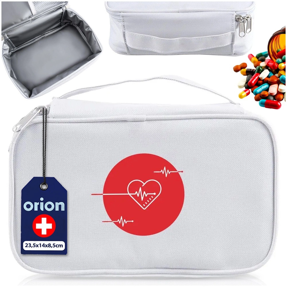 Bewaar medicijnen, siropen, injecties en kleine medische hulpmiddelen veilig en overzichtelijk. De ORION thermotas is gemaakt van sterk polyester in het wit met een rood hart- en ECG‑motief. De thermo‑isolerende voering helpt een stabiele temperatuur te behouden en beschermt de inhoud tijdens kortdurend vervoer.