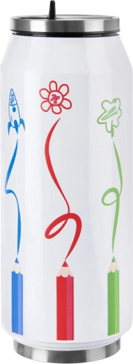 Stijlvolle thermosbeker in de vorm van een blik met een inhoud van 500 ml houdt je dranken tot 12 uur warm en tot 8 uur koud. Dankzij de dubbelwandige constructie met vacuümisolatie, de behuizing van roestvrij staal en de lekdichte deksel met opklapbare tuit en rietje is hij ideaal voor onderweg, naar school en naar het werk.