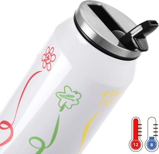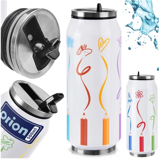 Praktische en moderne thermosbeker met een inhoud van 500 ml in de iconische blikvorm. Je zult verrast zijn door de uitstekende isolatie en het comfortabele gebruik. De dubbelwand met vacuüm houdt de temperatuur van de drank effectief vast, terwijl roestvrij staal zorgt voor duurzaamheid en een lange levensduur. Dankzij de opklapbare tuit en het interne rietje kun je drinken zonder de beker te kantelen.
