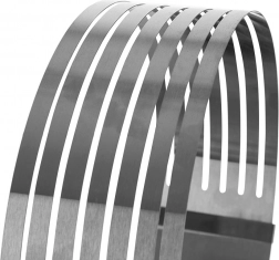 Dankzij 6 geleidingssleuven snijdt u de bodem gemakkelijk in tot 7 gelijkmatige plakken. Het robuuste roestvrij staal staat garant voor een lange levensduur, eenvoudige reiniging en corrosiebestendigheid. De ring is geschikt voor de vaatwasser.