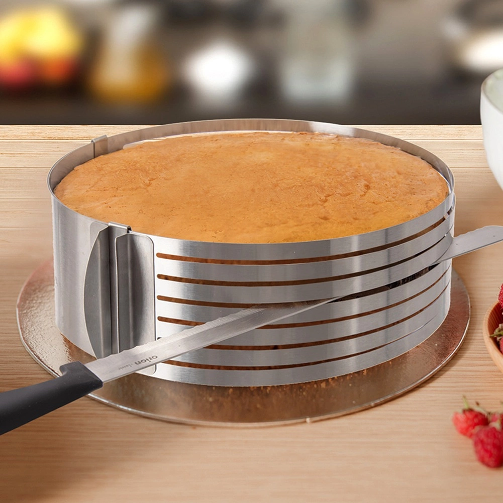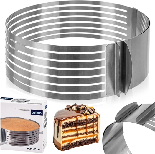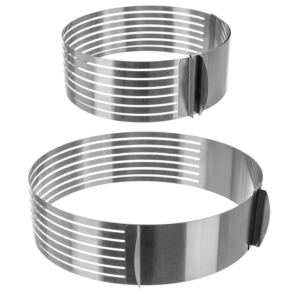 De roestvrijstalen snijring voor cakebodems is de ideale hulp voor bakliefhebbers die perfect egale lagen willen bereiken zonder ingewikkeld meten. De verstelbare klem maakt het mogelijk de diameter nauwkeurig aan te passen van 24 tot 30 cm, terwijl de geleidingsgroeven het mes in één vlak helpen leiden.