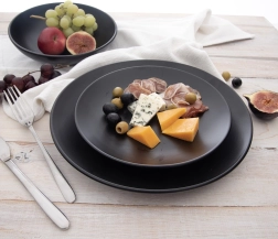 Minimalistisch design in matte zwarte kleur dat zowel het dagelijks serveren als een feestelijke tafel naar een hoger niveau tilt en gemakkelijk combineert met andere keramiek.