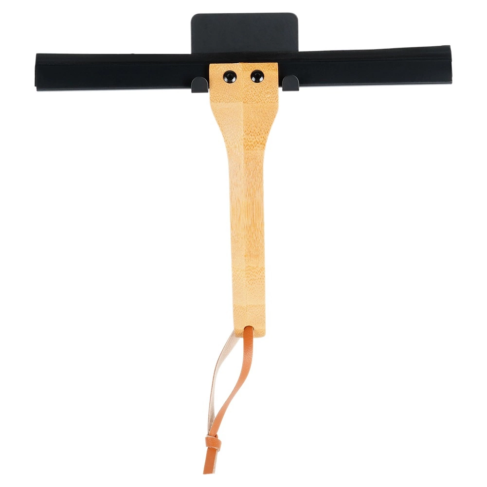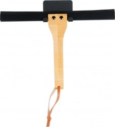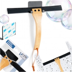 In de verpakking zit een muurhouder met 3M-tape, zodat je de ruitenwisser eenvoudig kunt bevestigen zonder te boren. De robuuste metalen body in het zwart en het natuurlijke bamboe vormen samen een duurzame en stijlvolle oplossing voor de moderne badkamer.