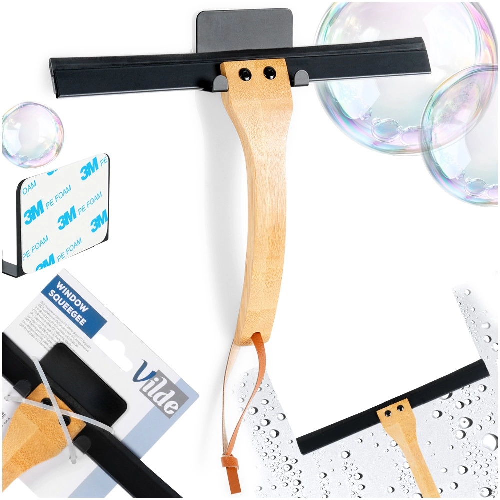 Houd glas en tegels perfect schoon met de Vilde ruitenwisser met een hoogwaardige rubberen strip die het oppervlak betrouwbaar volgt en zonder strepen of druppels achterlaat. Het ergonomische bamboe handvat ligt zeker in de hand en vereenvoudigt het dagelijks schoonmaken van douche, spiegels en ramen.