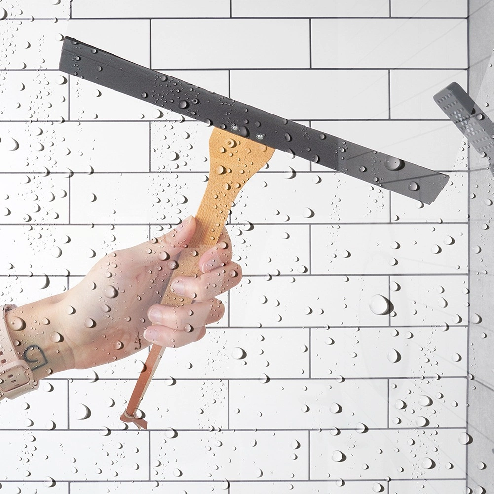 De brede, flexibele rubberen strip sluit aan op glas- en tegeloppervlakken en voert water snel af zonder strepen achter te laten.