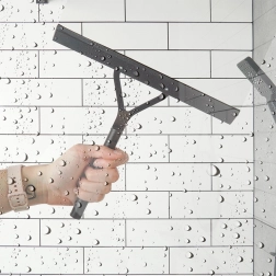 De brede strip en comfortabele greep garanderen efficiënt verwijderen van water op douchedeuren, ramen en spiegels zonder moeite.