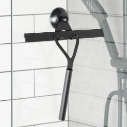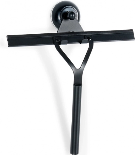 De houder met zuignap maakt snel ophangen van de wisser op glas of tegels mogelijk – een praktische en esthetische oplossing voor elke badkamer.