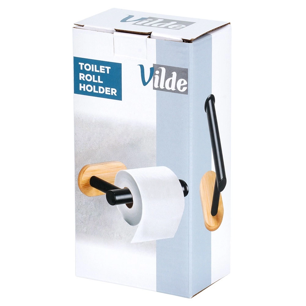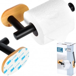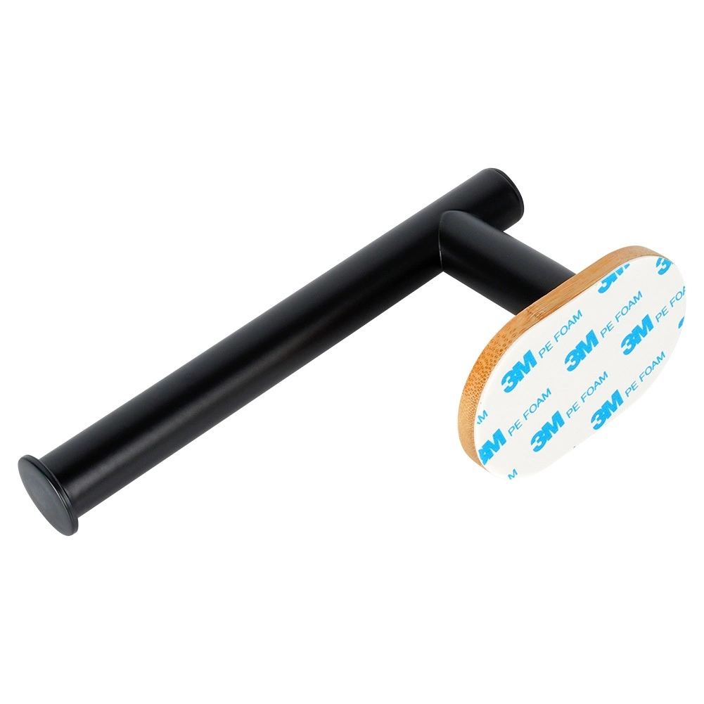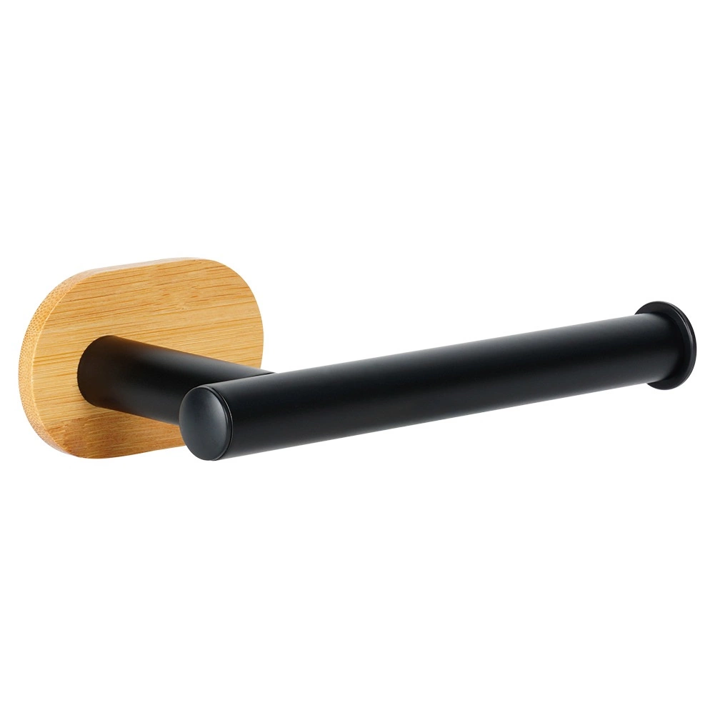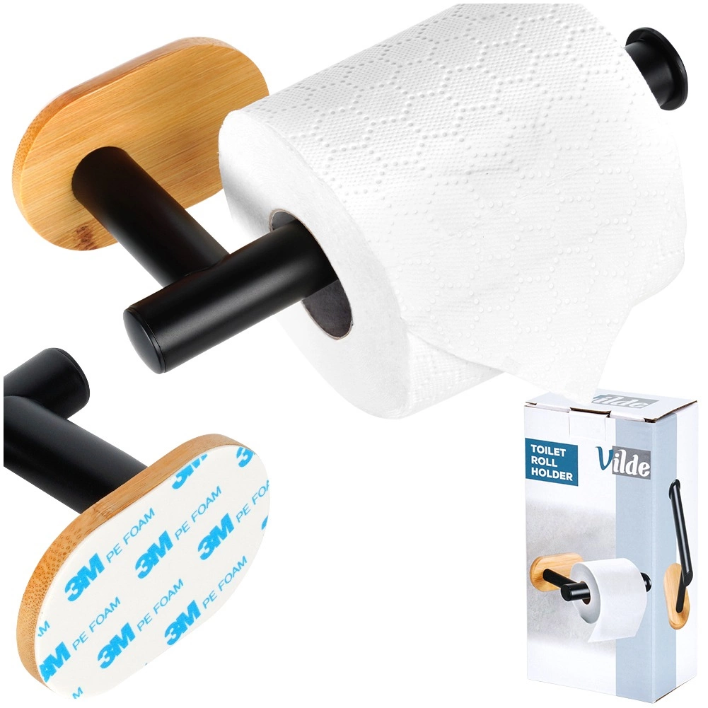 Praktische toiletpapierhouder die duurzaam roestvrij staal combineert met een elegante bamboe basis, perfect voor moderne badkamers. Het zelfklevende 3M-systeem zorgt voor een stevige bevestiging zonder boren, waardoor de installatie snel en schoon is.