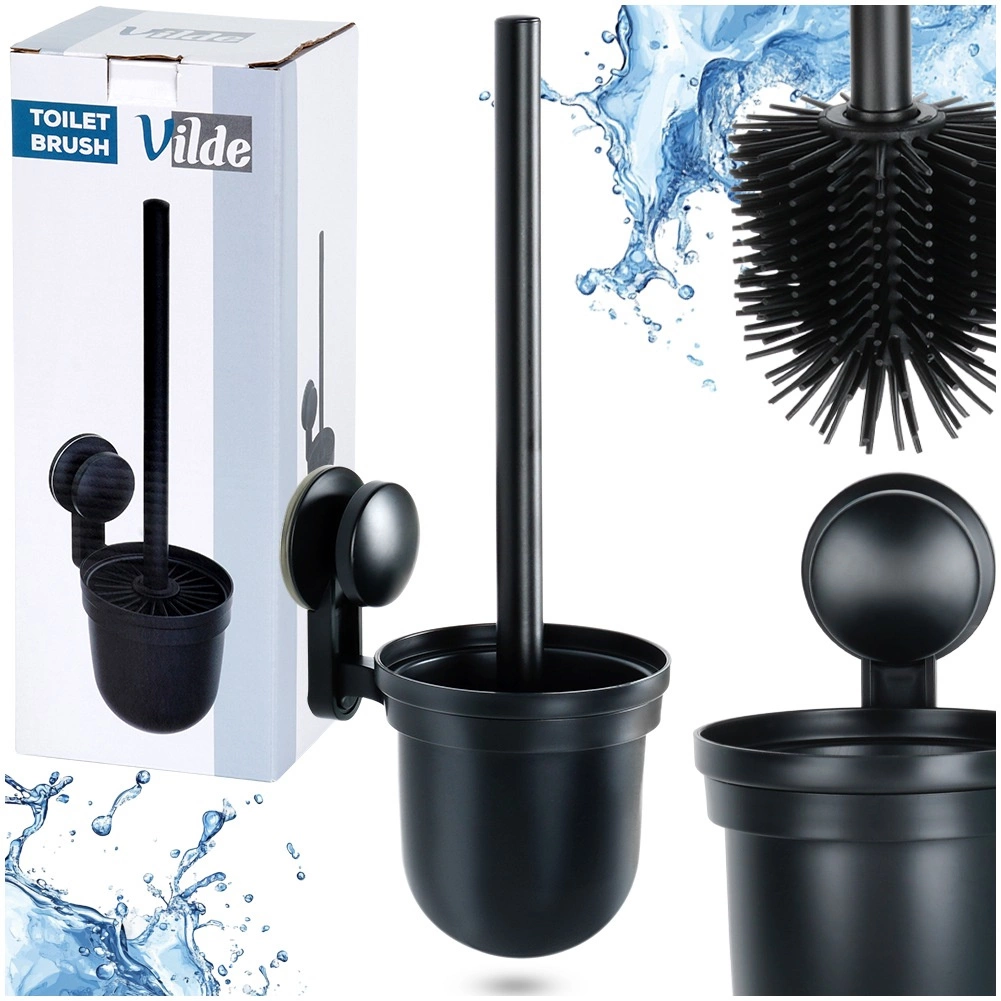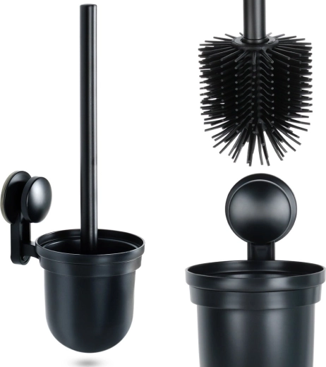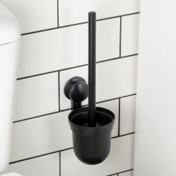 Dankzij montage met 3M-tape hoef je niet te boren – simpelweg losmaken, aandrukken en het zit vast. Het metalen handvat is stevig en comfortabel, de verwisselbare reinigingskop verlengt de levensduur van de set. De minimalistische zwarte kleur past perfect bij moderne badkamers.