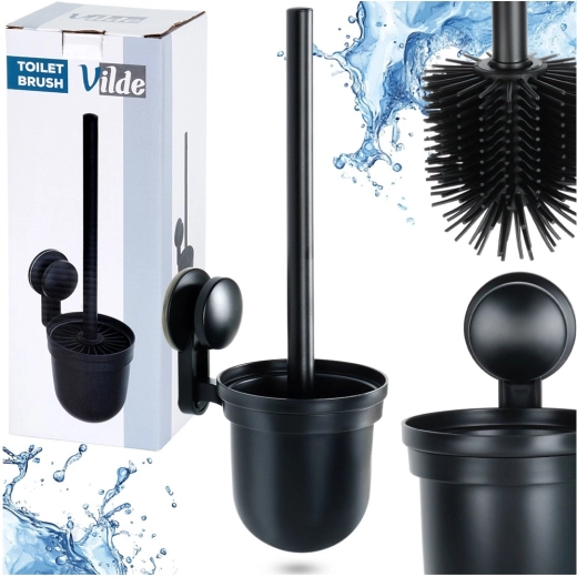 Praktische siliconen wc-borstel met wandhouder en lekbak in matzwart design bespaart ruimte, maakt vloerreiniging makkelijker en zorgt voor hygiënische opslag. Flexibele siliconen borstelharen reinigen effectief ook onder de rand van de pot, het metalen handvat ligt prettig in de hand en montage zonder boren met 3M-tape is snel en betrouwbaar.