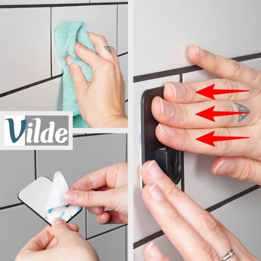 De installatie is snel en stabiel. De zelfklevende 3M-bevestiging hecht stevig op een glad oppervlak, zodat tegels of muur niet worden beschadigd.