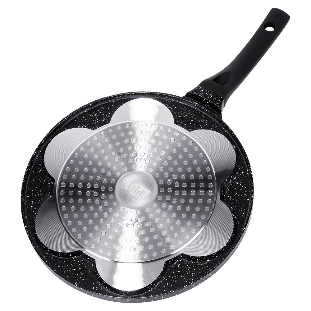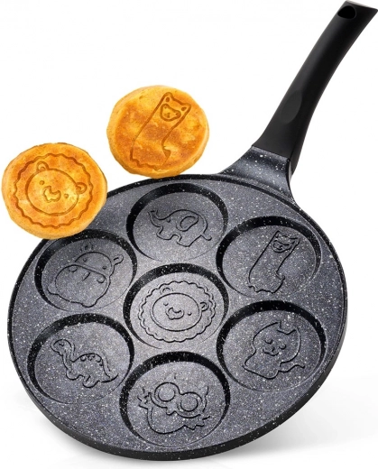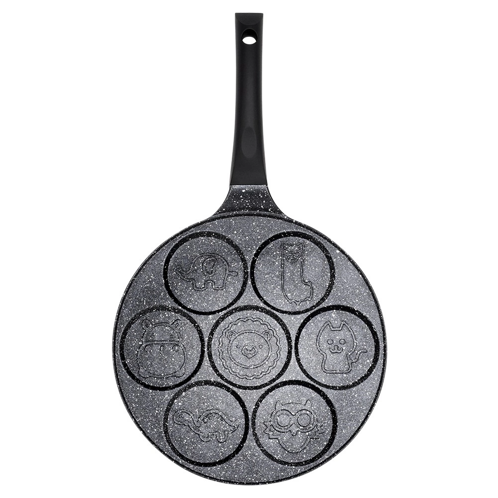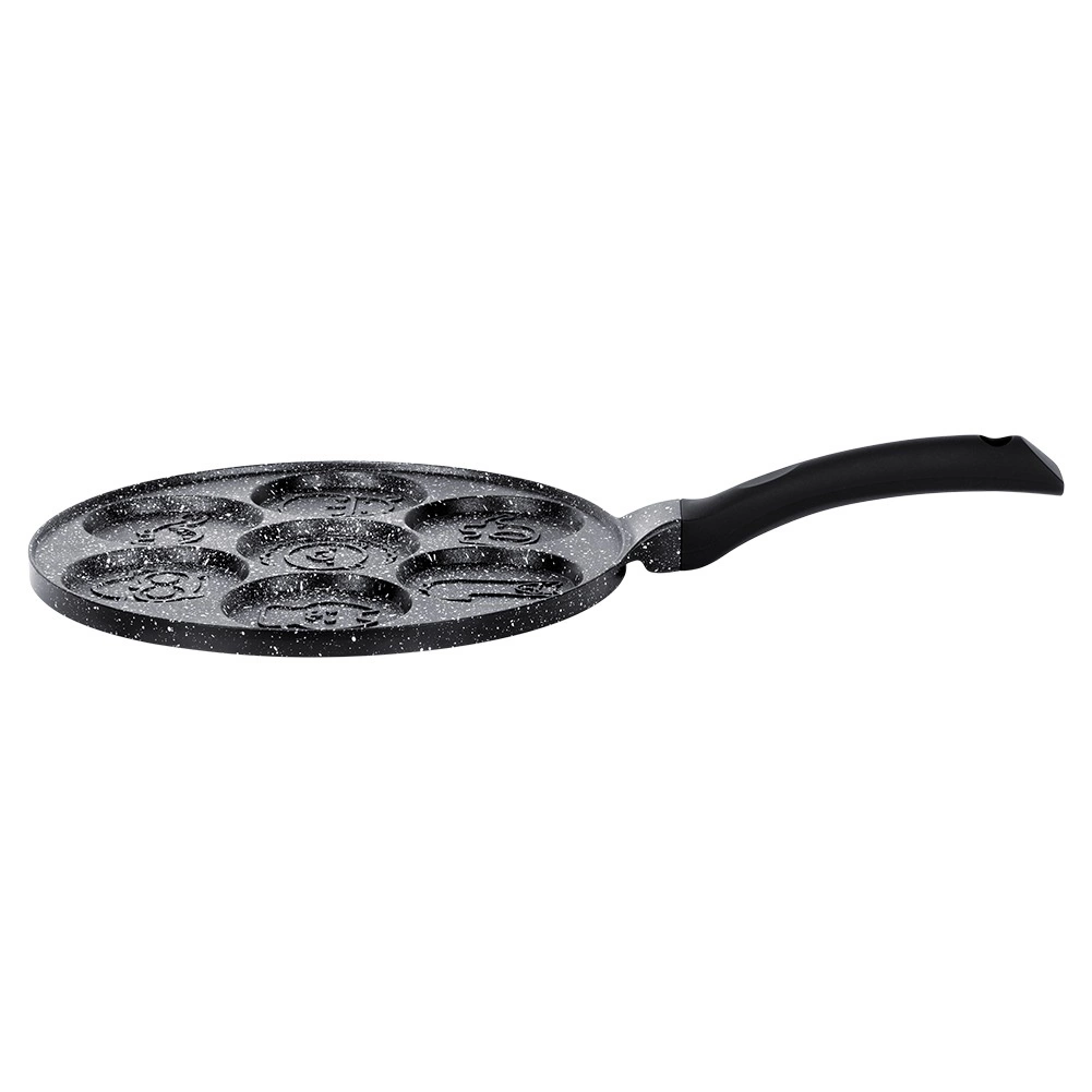 Geniet van een snelle en speelse bereiding van het ontbijt. De granieten pan BLACK LINE combineert een lichtgewicht aluminium body met een duurzame antiaanbaklaag, zodat spiegeleieren, poffertjes en mini-pannenkoeken makkelijk uit de vormpjes lossen en de pan eenvoudig schoon te maken is. De dierlijke reliëfs op de bodem van de vormen verheugen kinderen en volwassenen en maken van elke ochtend een klein ritueel.