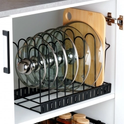 Houd deksels, borden en snijplanken gescheiden en overzichtelijk. De organizer bespaart ruimte en versnelt de toegang tot veelgebruikt kookgerei.