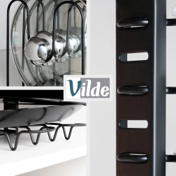 Verplaats de niveaus eenvoudig zodat zowel kleine als grote pannen, diepe potten en hoge deksels in het rek passen.