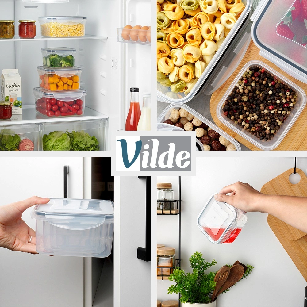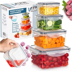 Deze veelzijdige set van vier vierkante bakjes helpt orde te houden in de keuken en verlengt de versheid van voedsel. Transparante wanden maken snelle inhoudscontrole mogelijk zonder te openen, de deksels met vier vergrendelingen en siliconen afdichting zorgen voor een betrouwbare dichtheid. De bakjes zijn in elkaar stapelbaar om ruimte te besparen.