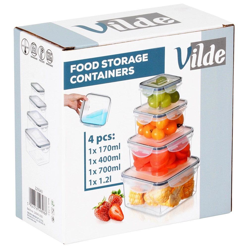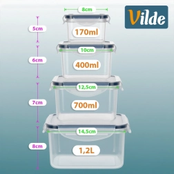 - 4 formaten in de set: 1,2 l, 700 ml, 400 ml, 170 ml – voor verschillende soorten voedsel
