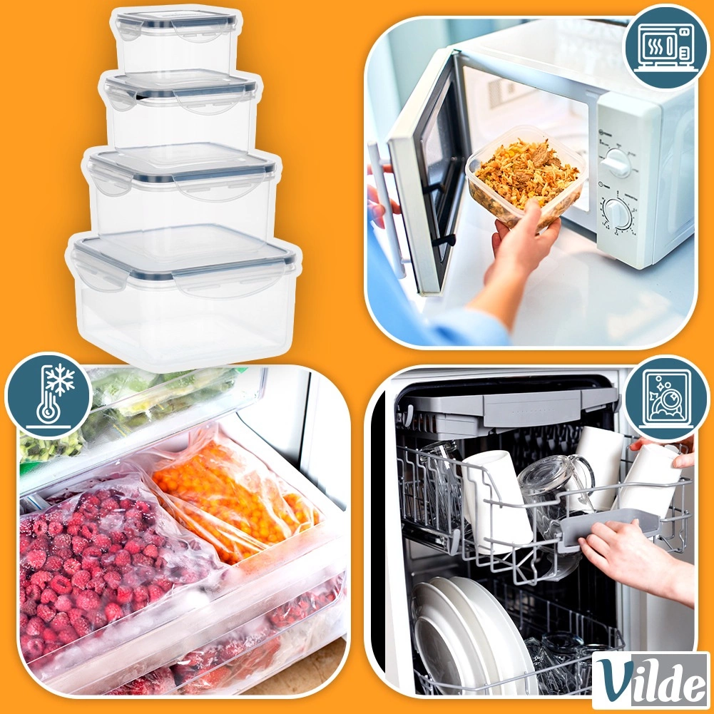Ideaal voor droge voedingsmiddelen, vleeswaren, salades, fruit, kant-en-klare maaltijden en snacks. Dankzij de temperatuurbestendigheid van -20 °C tot 100 °C zijn ze geschikt om in te vriezen en op te warmen (zonder deksel) en na gebruik kun je ze gemakkelijk in de vaatwasser reinigen. Het BPA-vrije materiaal is veilig voor contact met voedingsmiddelen.