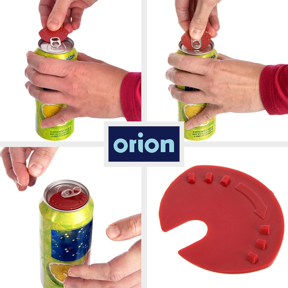 De set combineert een opener en een afdekkapje in één slimme accessoire. Het kunststof deel wordt onder het lipje geschoven en de uitsparing rust op de middenklinknagel van het deksel, waardoor je de klep veilig en comfortabel kunt optillen zonder onnodige kracht. Na het openen draai je het kapje eenvoudig om de opening af te dekken – de vergrendeling in de uitsparing haakt vast aan de middenklinknagel en de rand klikt in de velg van het blik.