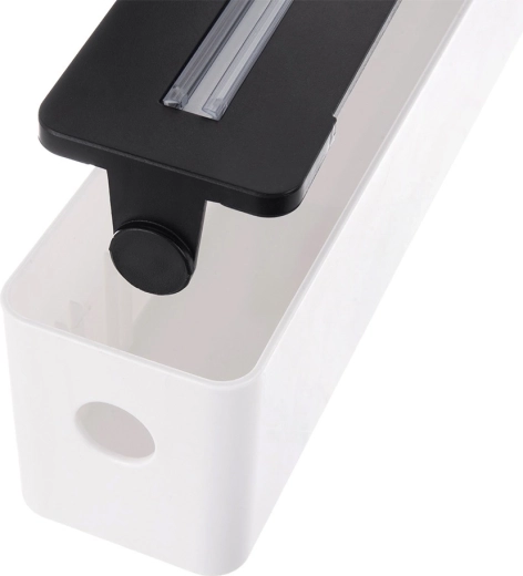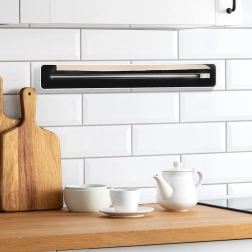 Houd de keuken georganiseerd en werk sneller. De dispenser in een elegante zwart-witte uitvoering bergt de rol veilig op en scheidt dankzij het precieze mes moeiteloos de gewenste lengte af. De lichte en duurzame constructie is makkelijk schoon te maken en geschikt voor dagelijks gebruik.