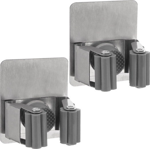 Praktische set van twee muurhouders voor moppen, bezems en gereedschap om zowel thuis als in de werkplaats alles netjes geordend te houden. Elke houder heeft een verstelbare grip met antisliprubber, draagt tot 5 kg en is geschikt voor steeldiameters tot 2,5 cm. De montage is eenvoudig en zonder boren – plak ze gewoon op een schone, gladde ondergrond. Duurzaam roestvrij staal, antisliprollen en ruimtebesparing maken deze set ideaal voor badkamer, keuken, hal, bijkeuken of garage.