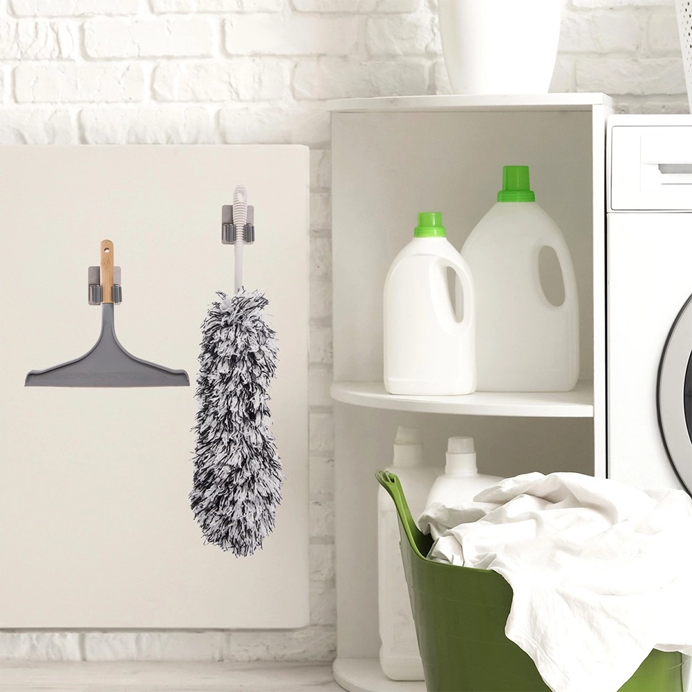 Houd je schoonmaakspullen en lange gereedschappen veilig en overzichtelijk aan de muur. De zelfklevende houders met roestvrijstalen basis en rubberen rollen passen zich automatisch aan de dikte van de steel aan en klemmen stevig vast. Dankzij het draagvermogen tot 5 kg zijn ze geschikt voor zowel lichte als zwaardere accessoires.