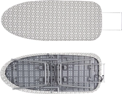 Afneembare 100% katoenen hoes met 5 mm vilt voor soepele glij-eigenschappen en gelijkmatige warmte. Praktische uitschuifbare aflegplek voor het strijkijzer voor extra comfort.