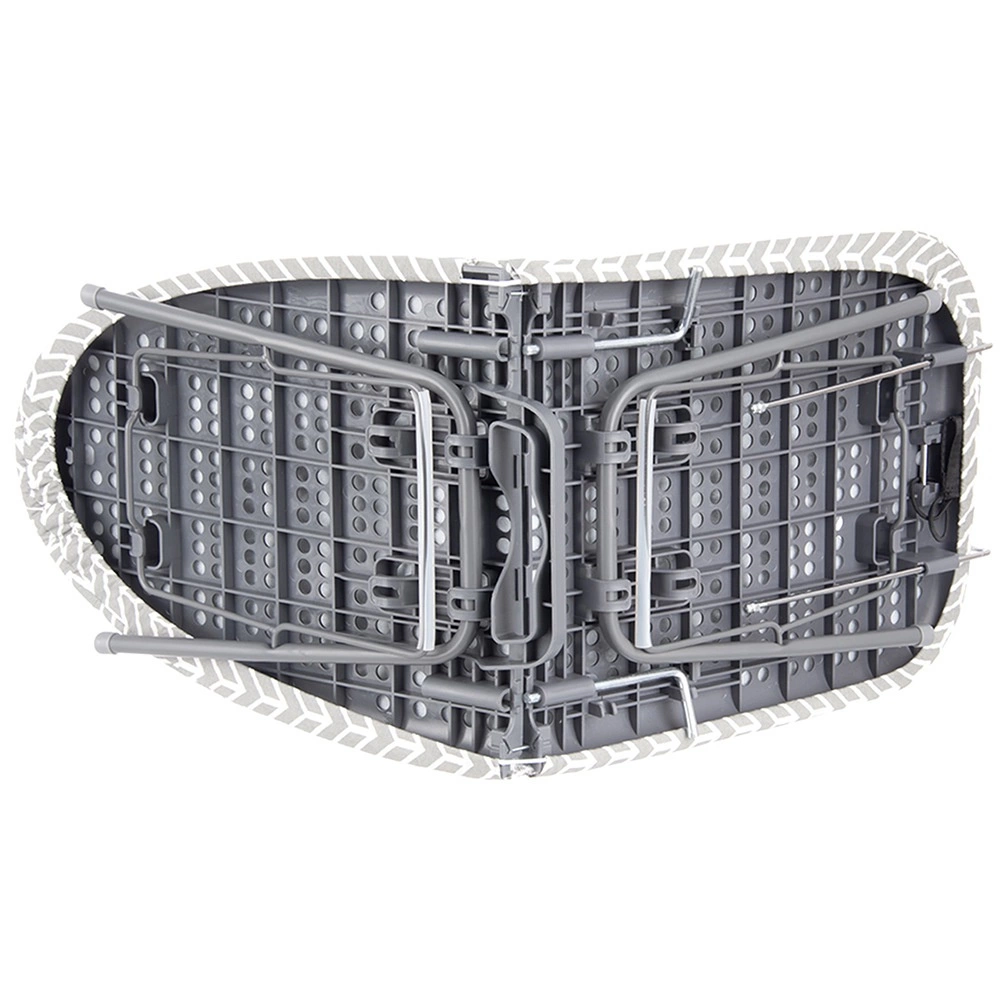 Het metalen frame in grijs, antislipvoetjes en een vergrendeling tegen onbedoeld inklappen zorgen voor veilig en comfortabel strijken op elke tafel.