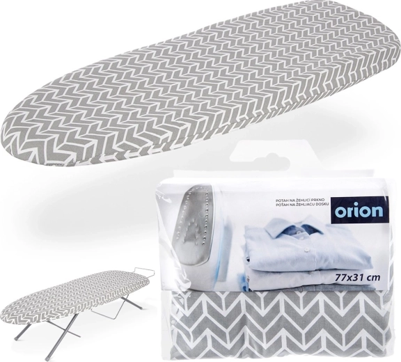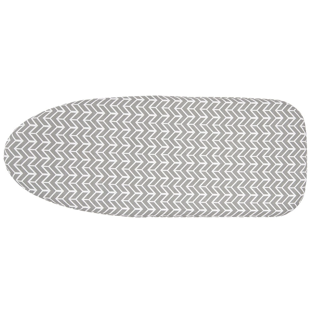 Zoek je een compacte oplossing voor een kleine of tafelstrijkplank? Deze grijze hoes met wit geometrisch patroon is gemaakt van zuiver katoen en heeft aan de onderzijde een zachte 5 mm vilten vulling voor betere glij-eigenschappen van het strijkijzer en bescherming van het blad. De standaardmaat 77 × 31 cm past op de meeste kleinere planken.