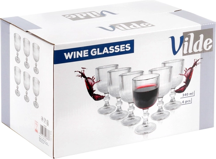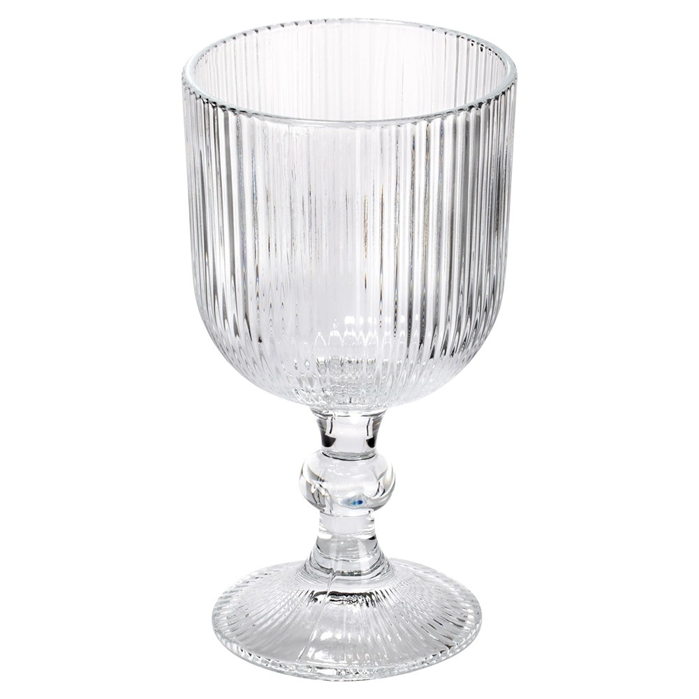 Breng stijl op tafel met veelzijdige glazen die de kleur van de drank accentueren en tegelijk uitstekend gebruikscomfort bieden. Transparant, dikwandig glas met verticale ribbels oogt decoratief en helpt bij een veiligere grip. Elk glas meet circa 9 × 16,5 cm en heeft een maximale inhoud van 340 ml – ideaal voor wijn, water en cocktails.